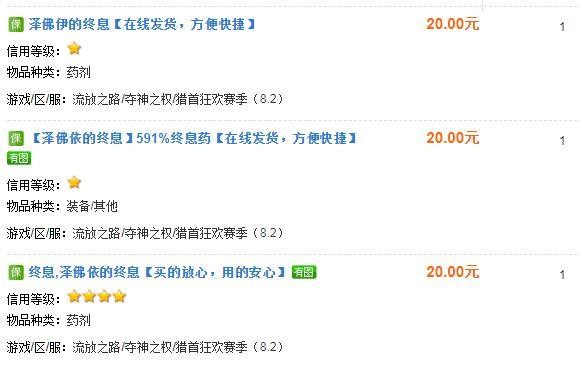 以猎首闪回为例子,比如游戏里1混沌的图腾衣,在交易平台上卖5RMB。游戏里卖30混沌约3r的终息,平台上卖20rmb。利润高的吓人。