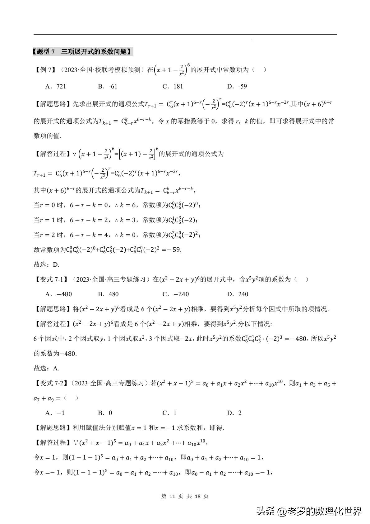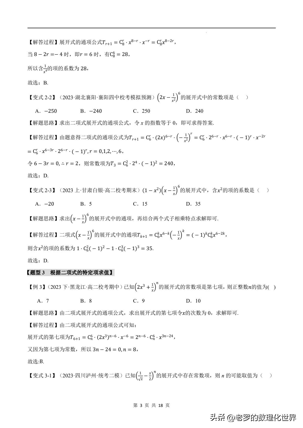 据统计,在各类数学考试中,涉及二项式定理的题目出错率较高。这也从侧面反映出大家对它的理解还不够深入。