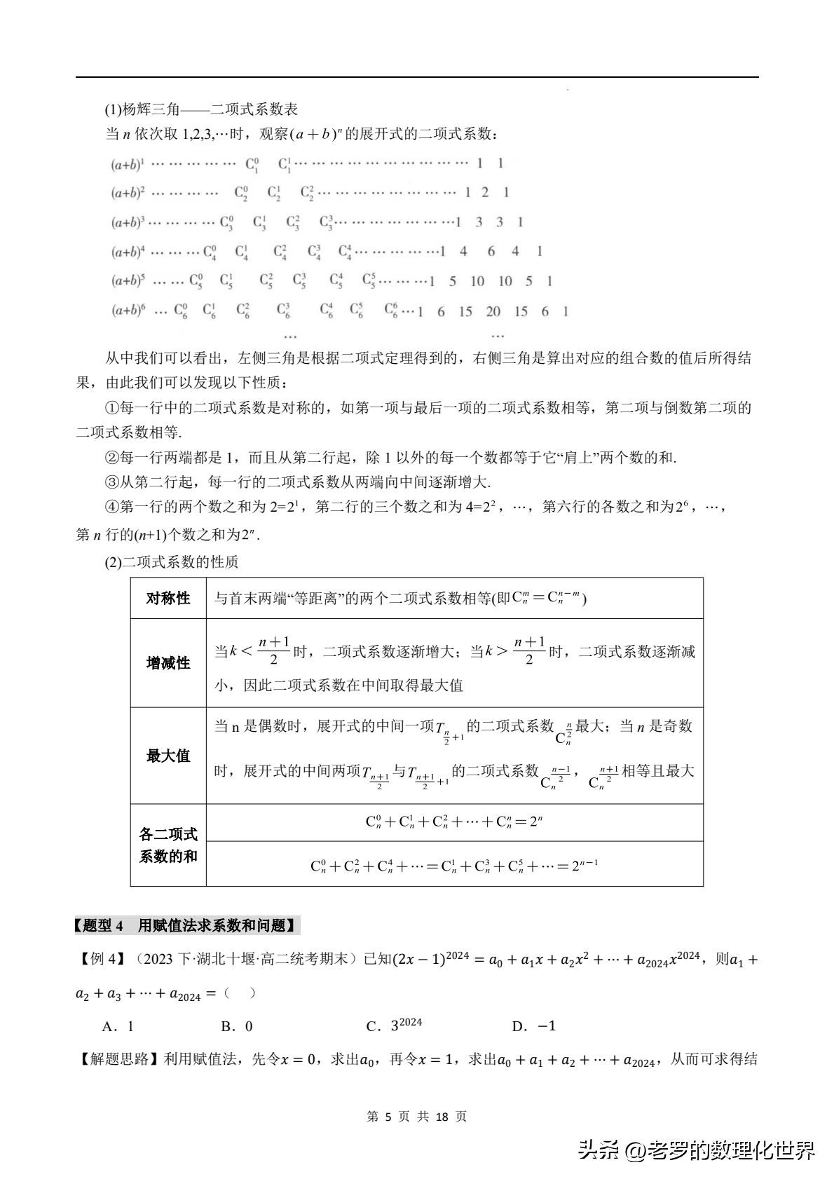 高中数学:二项式定理的精彩讲解