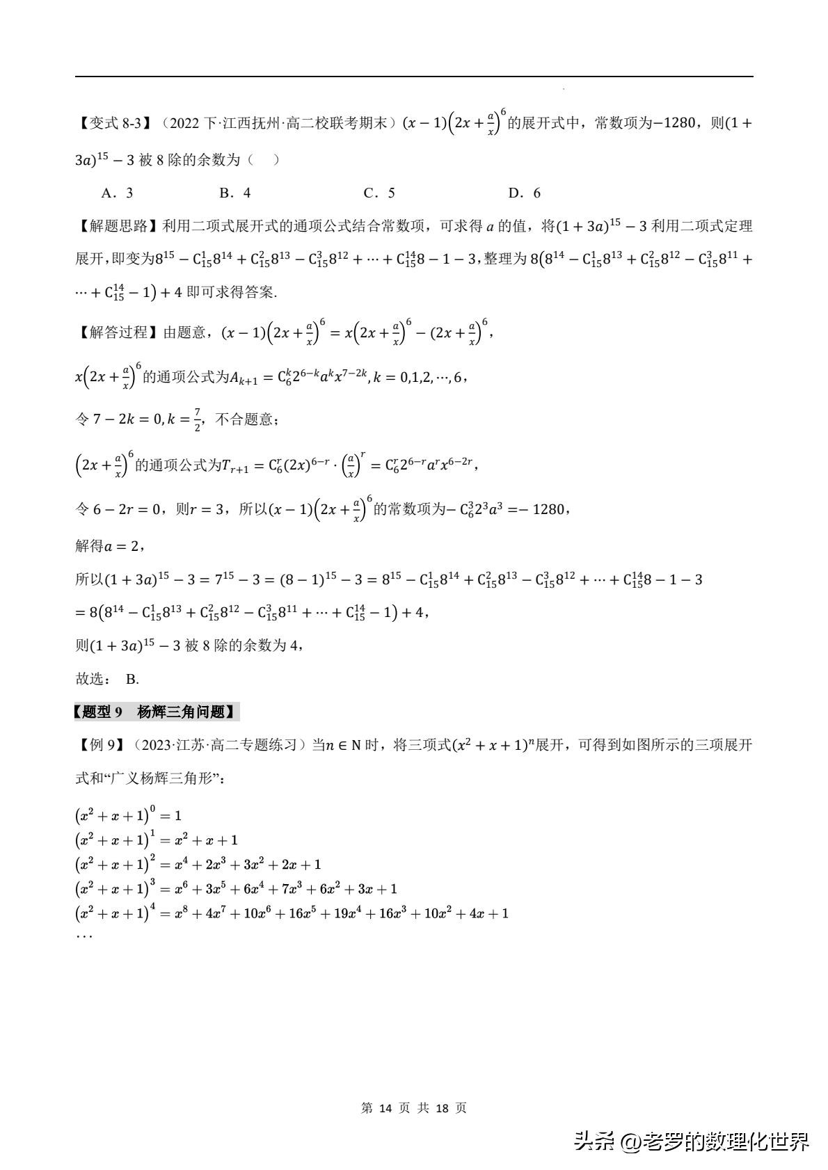时,运用二项式定理,结合杨辉三角我们就能轻松得出