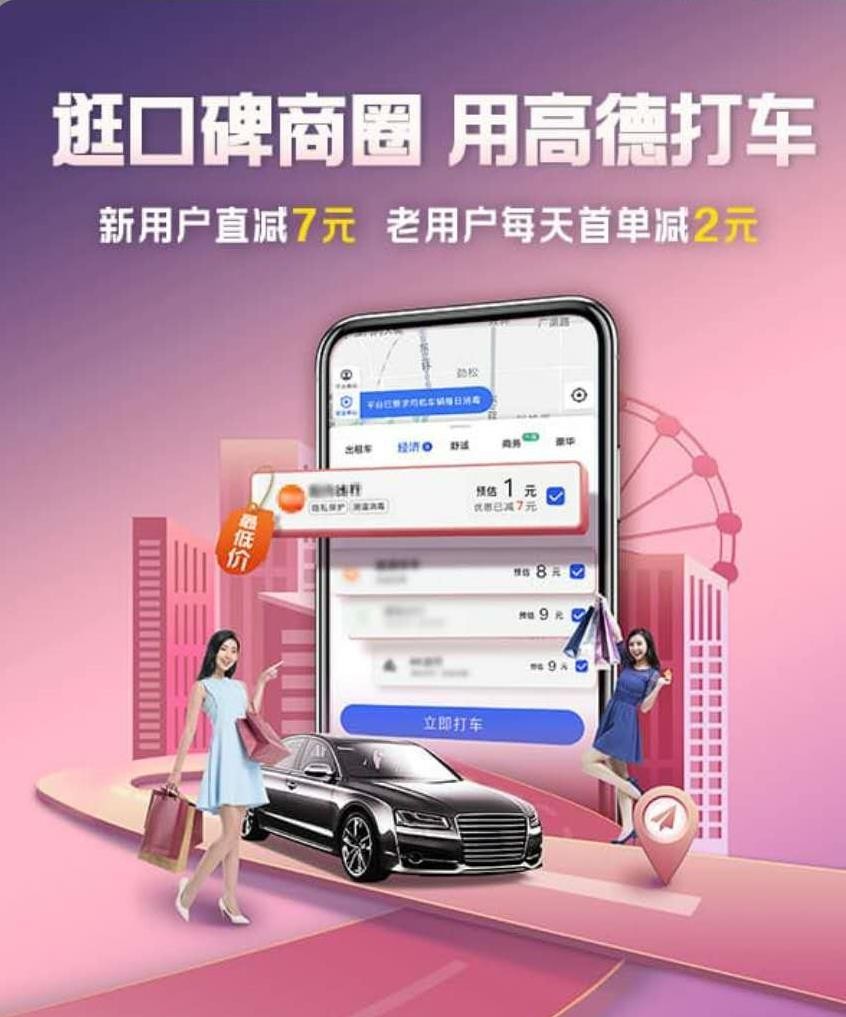 第三:出行类服务接入。我们可以发现,在高德地图上可以一键打车,并且接入多个平台类的打车,不止是滴滴。这一类的服务端接入,也会向打车平台收取费用。