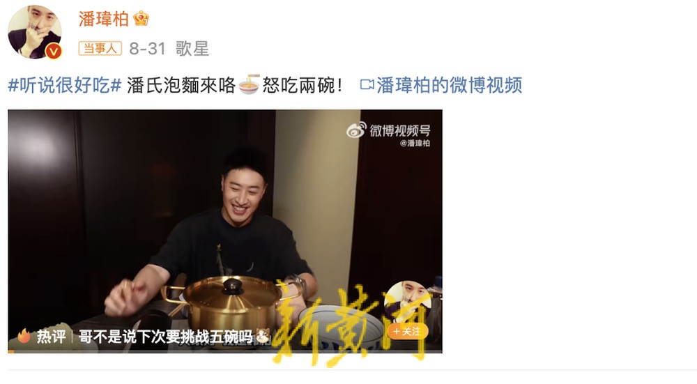 在最近的一段视频中,潘玮柏亲自下厨,展示了自己独特的“潘氏泡面煮法”。从选择锅具到掌握火候,从水的用量到调料的搭配,每一个步骤都显得那么讲究和用心。不少网友在看完视频后纷纷表示,潘玮柏从“潘帅”变成了“没有脖的潘玮”“潘玮厚”“潘伪薄”“潘桃”,每一个外号都是他一口口吃出来的,还有人强烈推荐他去《中餐厅》。