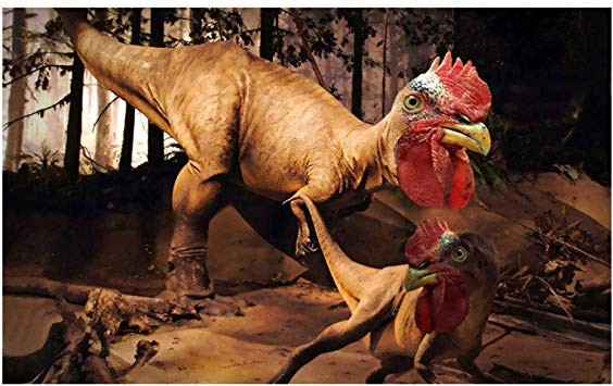 于是一想到鸡是由恐龙变过来的,这画面感似乎就有点“不淡定”了。