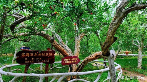 现如今,在蒙自市新安所保留较为完整的一片古树石榴园约200余亩,这里屹立着一棵棵见证了岁月沧桑的石榴古树,树龄均超过125年。如今,年纪最大的一棵石榴树迎来了它200岁的生日。“高龄”并没有令它失色,累累果实挂满枝头,具有皮薄、粒满、核软、汁多、味甜等特点,实为石榴中的上品。