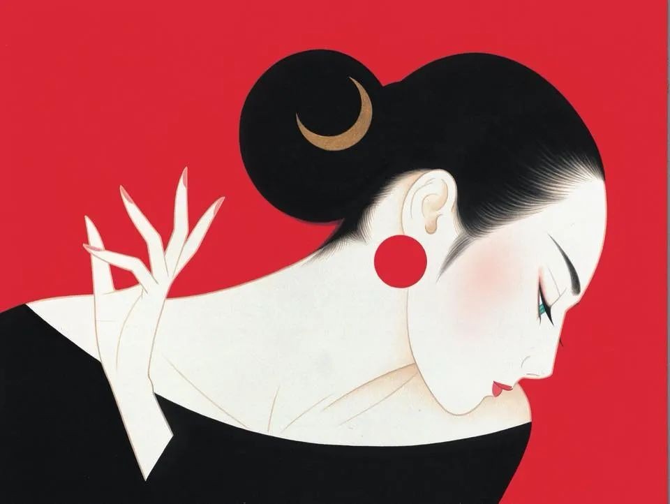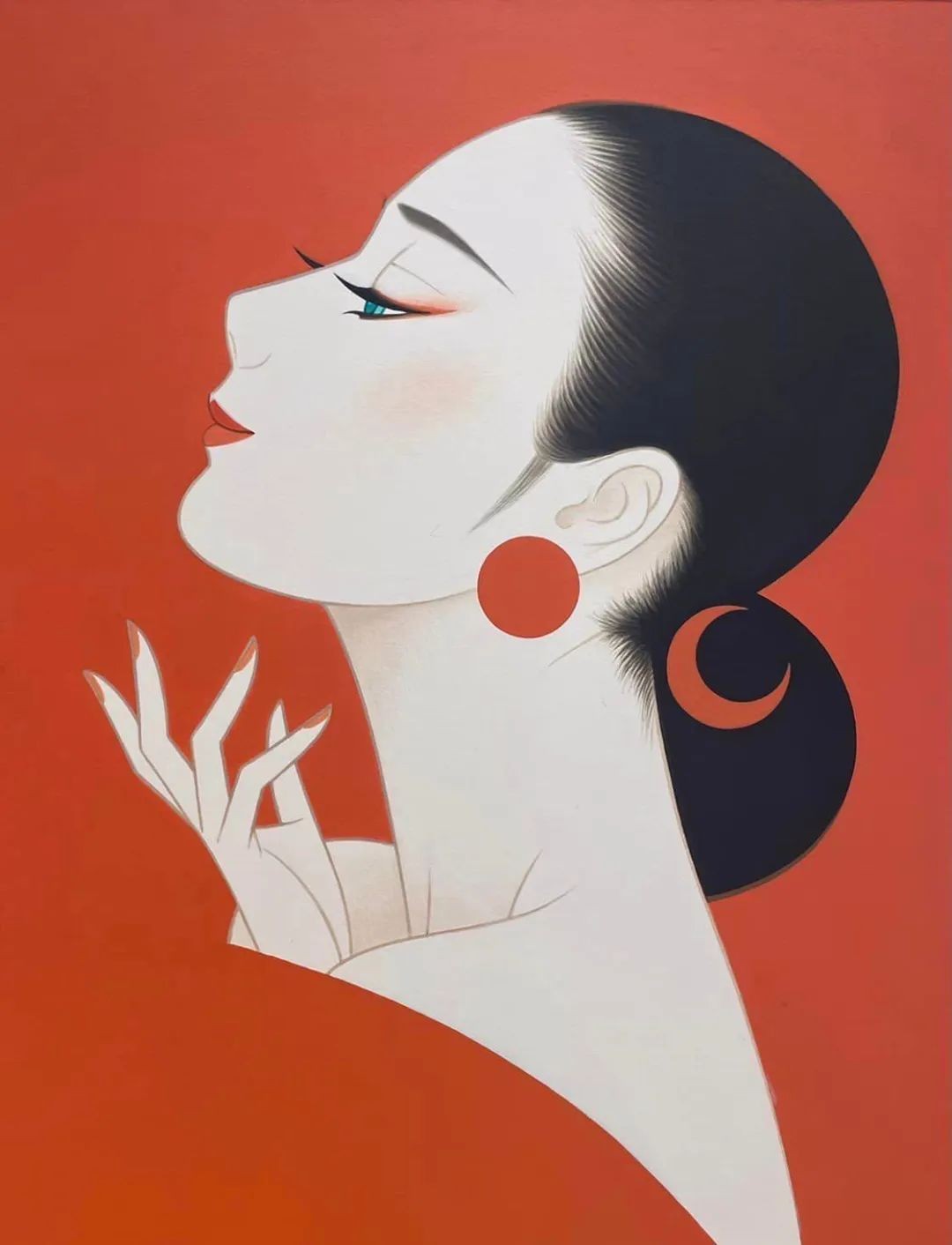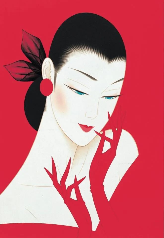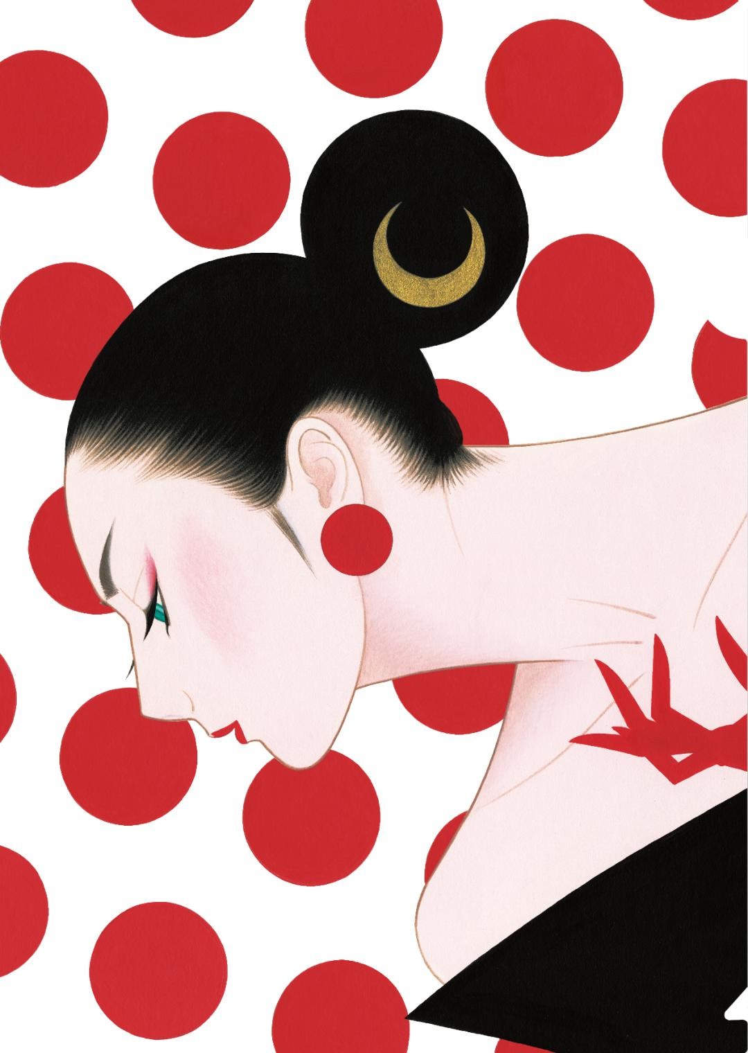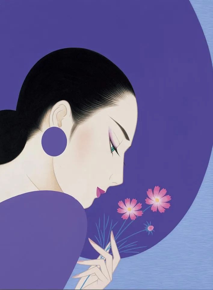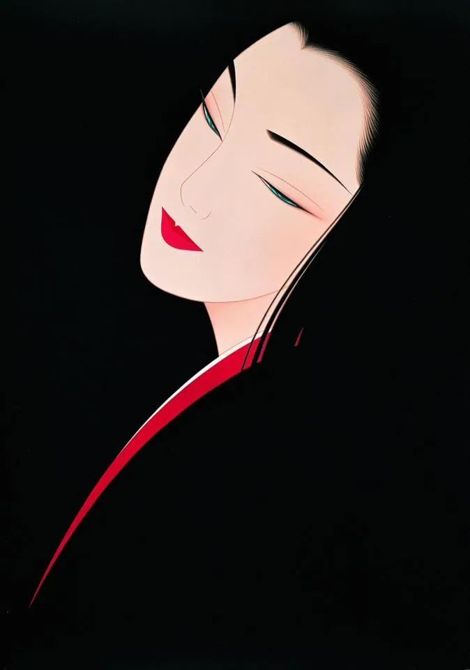 日本插画师鹤田受西方文化影响的写实画,后来逐渐开始致力表达东方美学、日本独特的美感的,例如浮世绘风格里面的人物画面,从中受到启发开始逐渐形成自己的独有的插画设计风格。