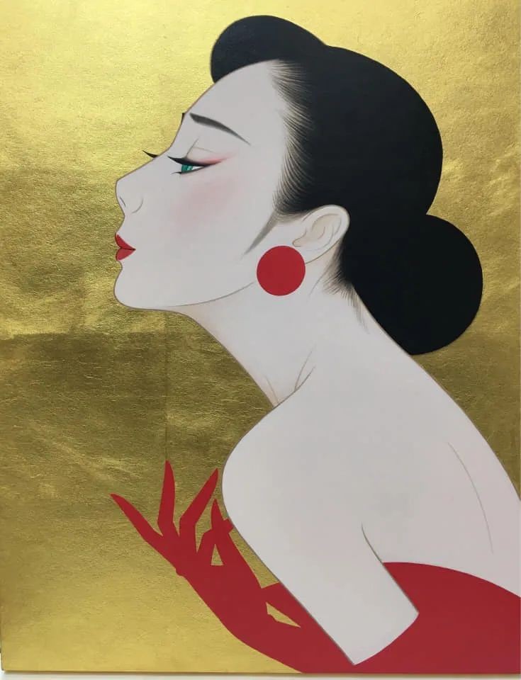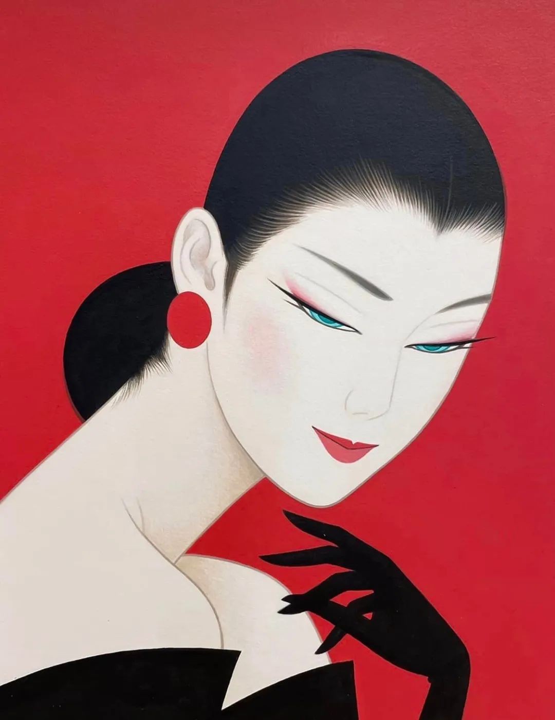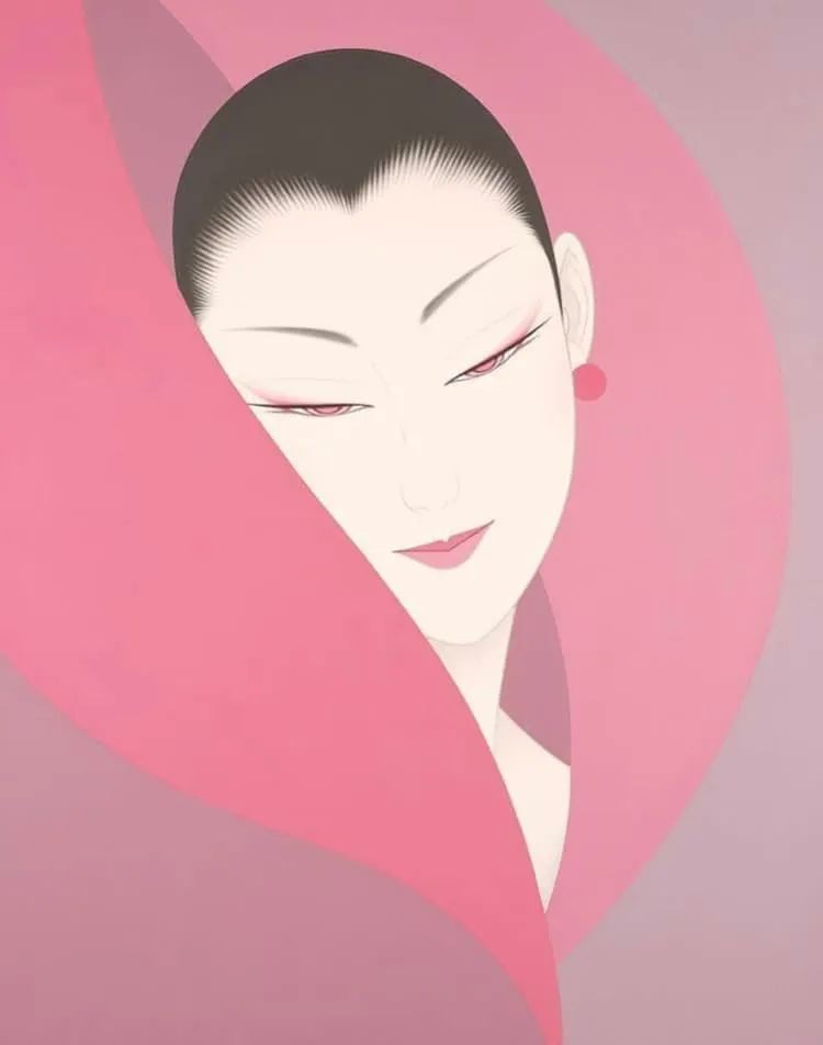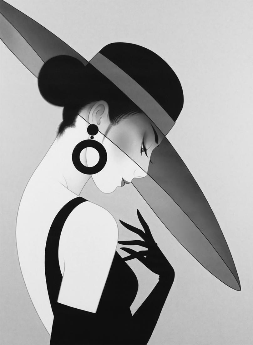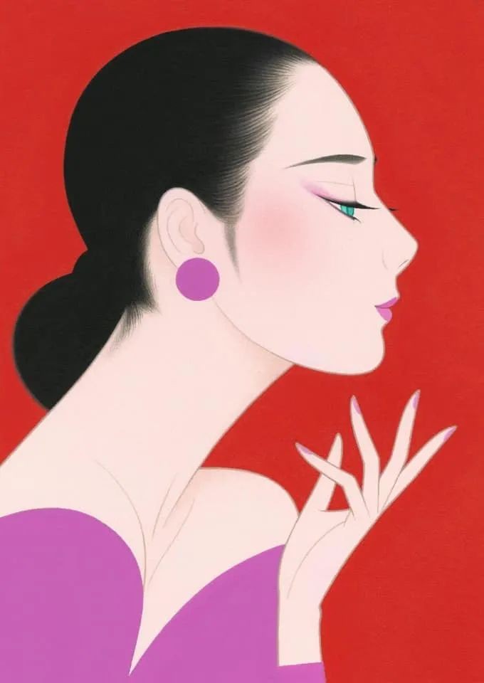 日本插画师鹤田受西方文化影响的写实画,后来逐渐开始致力表达东方美学、日本独特的美感的,例如浮世绘风格里面的人物画面,从中受到启发开始逐渐形成自己的独有的插画设计风格。