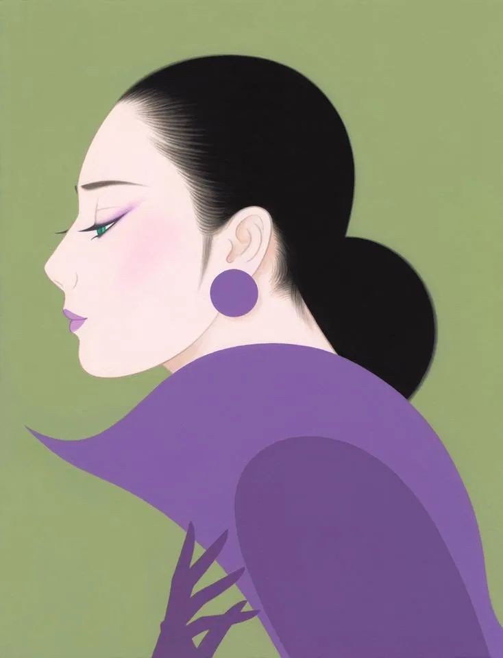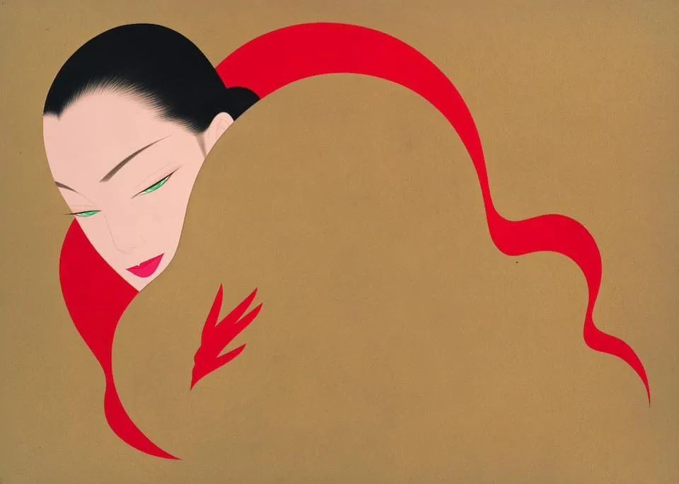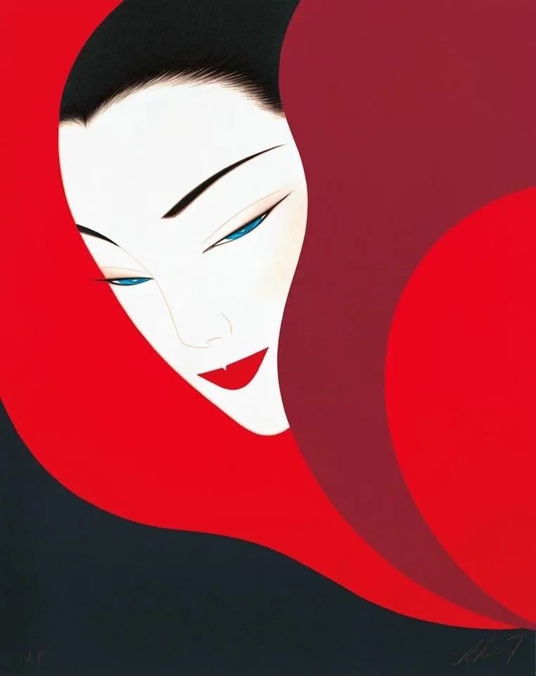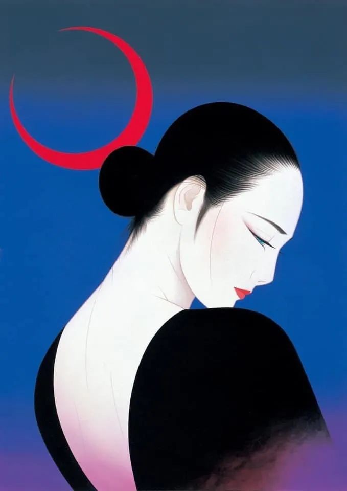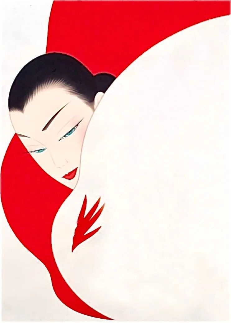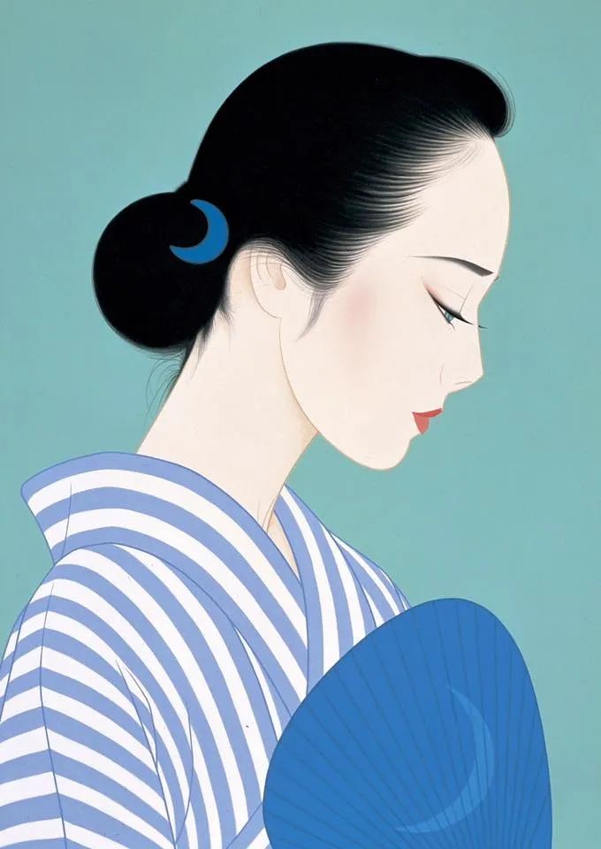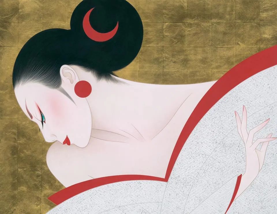 日本插画师鹤田受西方文化影响的写实画,后来逐渐开始致力表达东方美学、日本独特的美感的,例如浮世绘风格里面的人物画面,从中受到启发开始逐渐形成自己的独有的插画设计风格。