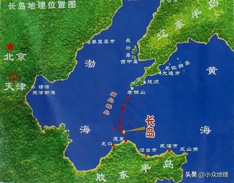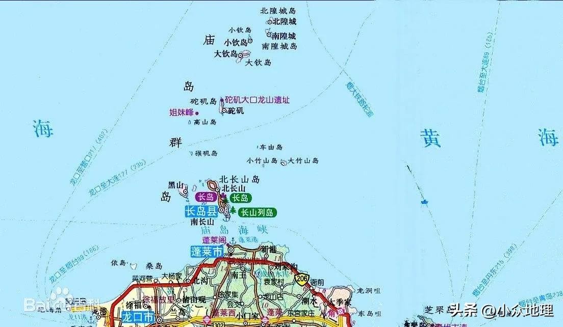 庙岛群岛共有30多个岛屿,其中面积较大的有南长山岛、北长山岛、大钦岛等岛屿,长岛县驻地在南长山岛上。庙岛群岛最北边的北城隍岛隔着老铁山水道与辽东半岛相望。