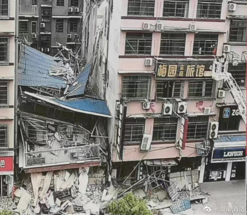 据央视新闻消息,垮塌建筑位于长沙医学院北门附近,为6层半砖混结构,建筑面积约800平方米,1楼为门面、2楼为饭店、3楼为私人影院、4-6楼为家庭旅馆,6楼以上阁楼为自住房。接到报警后,湖南省长沙市消防救援支队指挥中心调派了10个消防救援站23辆消防车、134名消防救援人员、4条搜救犬前往现场,初步判断有人被困。