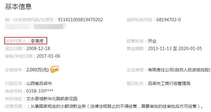 其法定代表人为李增虎