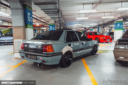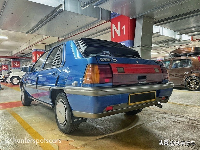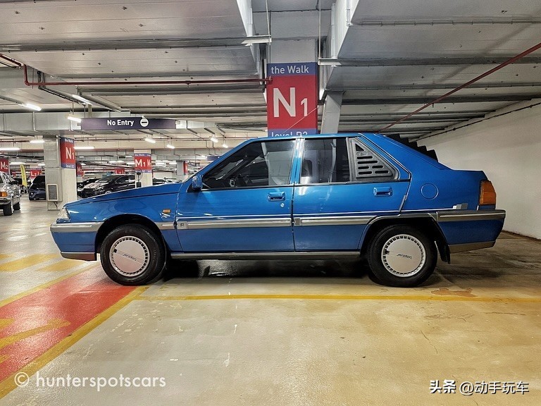 在马来西亚八打灵再也的The curve商场地下车库,几十台改装车相约聚会,众多车型中有台蓝色原厂车非常突兀,它造型古老但漆面光洁,颇有味道。