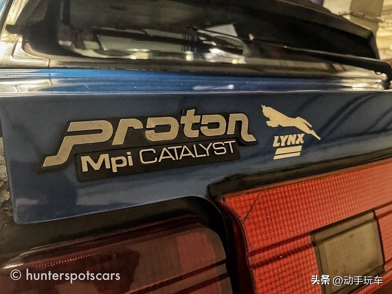 绕到车后,在车尾左侧贴着车标和引擎技术:“Proton”/“Mpi Catalyst”。