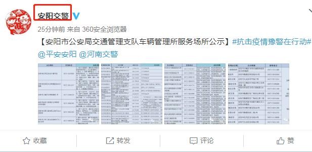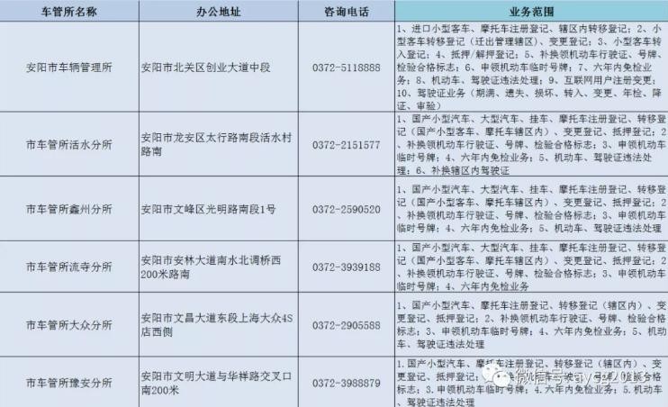 安阳交警发布,公布交通管理支队车辆管理所服务场所位置、电话