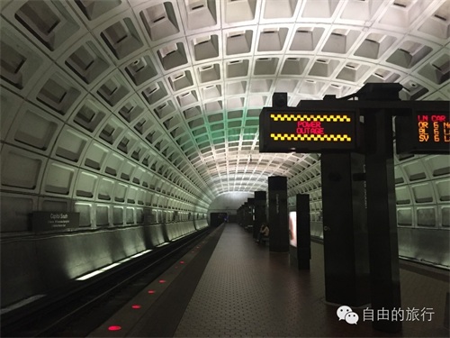 地铁站台有没有时光隧道的感觉?华盛顿地铁,为美国第二繁忙的城市轨道交通系统,仅次于纽约地铁,于1976年开始营运,设施设备比较新,比纽约干净、敞亮、稳当多了!华盛顿地铁有红橙黄绿蓝银6条营运路线,站点覆盖了华盛顿特区及邻近马里兰州的乔治王子县、蒙哥马利县、及弗吉尼亚州的费尔法克斯县、阿灵顿县、亚历山卓市等。