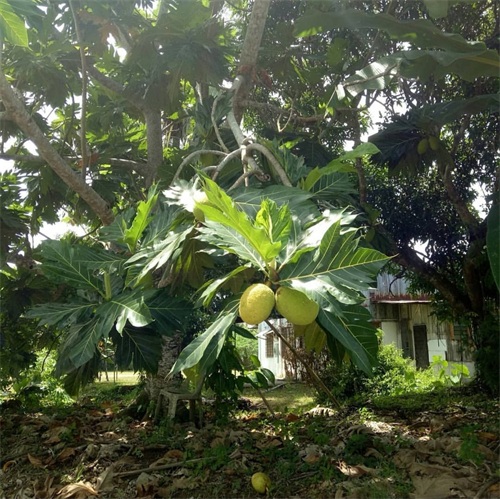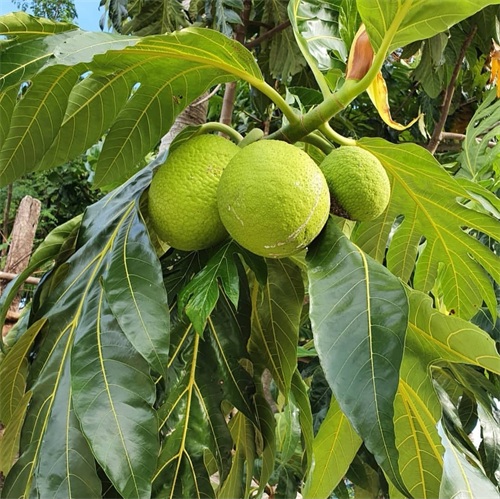 面包树原产于热带地区,在印度南部、马来半岛、加勒比等地区都有种植。当地人常在住宅外种这种面包果树,据说一棵面包树所结的面包果可以养活一家人。