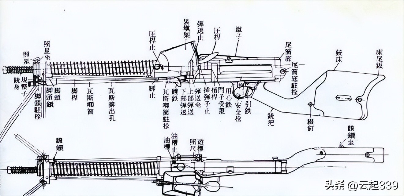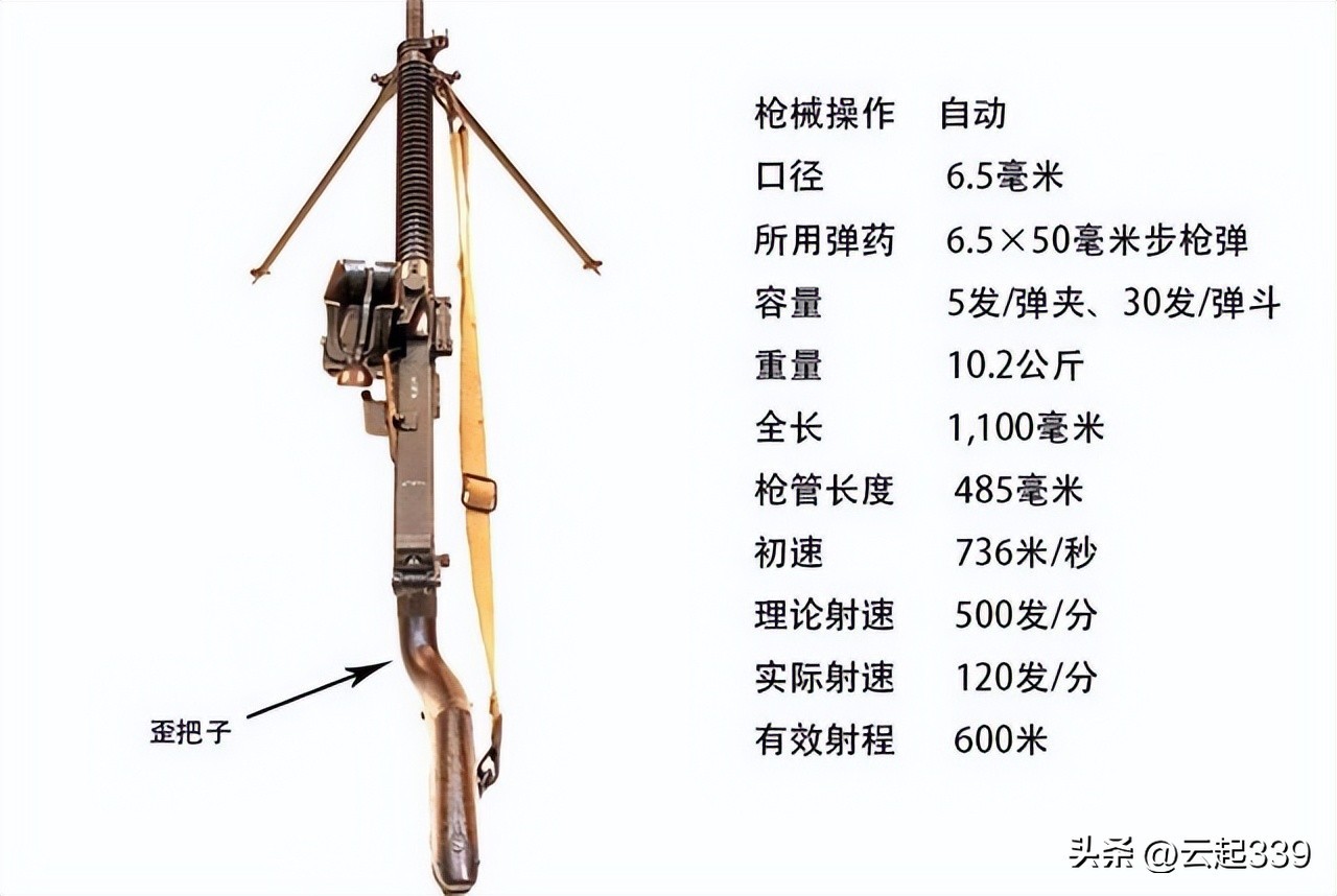 九六式轻机枪采用一样的友坂6.5mm弹,结构上接近歪把子,借鉴了捷克ZB26机枪部分结构。