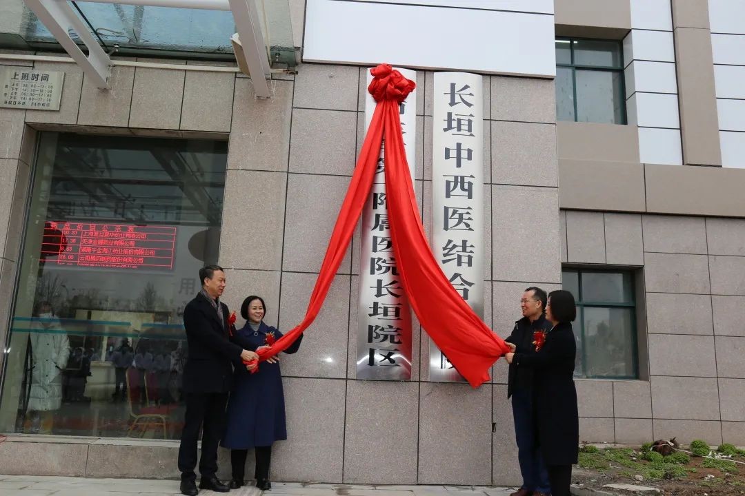 在热烈的掌声中,河大一附院党委书记张秋梅、院长张双林、长垣市卫健委党组成员、副主任李卫红、长垣市医保局副局长赵军民共同为“河南大学第一附属医院长垣院区”揭牌。