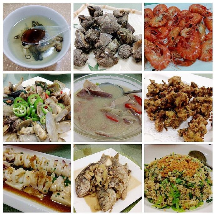海滨大道边有海鲜大排档,不少人在这里吃饭喝啤酒。