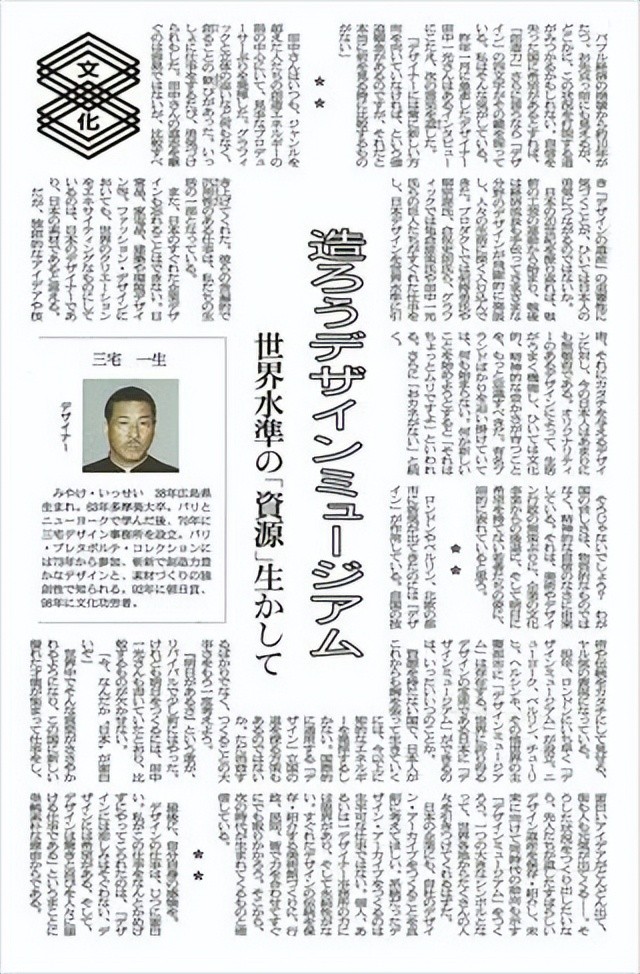 1977年,他在服装设计领域首次获得了每日设计奖。同年,设计奖纪念节目“博物馆的Issey Miyake - Issei Miyake和一块布”。