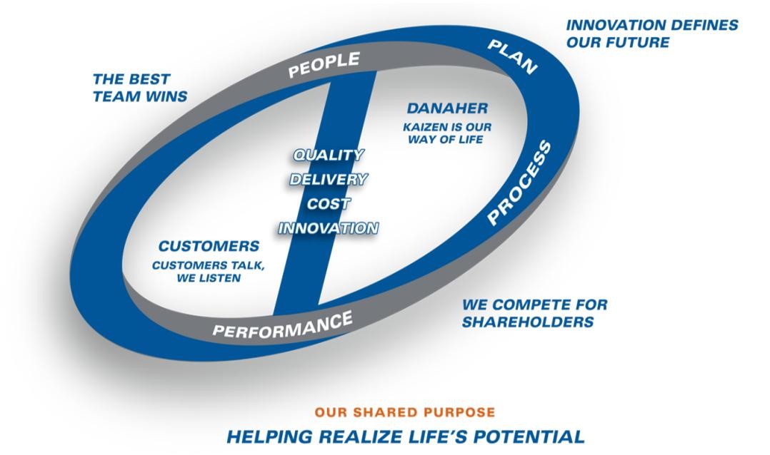 丹纳赫之所以能从当初一家不起眼的信托公司发展成为一家强大的科技巨头,不仅基于创始人的战略远见和领导力,另一个重要的因素在于公司从1980年代开始学习日本商业发展的“Kaizen”(改善,かいぜん)原则——在运营过程中持续改进的“精益制造”理念。丹纳赫是北美最早采用这一经营理念的企业之一,不仅在当时强化了其在行业中的领导地位,后来更是经过逐步演化,最终形成了现在的丹纳赫商业系统(Danaher Business System, DBS)。DBS现在不仅是运营公司日常使用的一套业务流程和工具,更广泛地说还成为了丹纳赫的企业文化。
