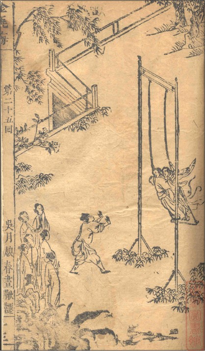 多说一句,金莲与敬济的这段奸情得以成功,也是拜月娘所赐,是她将刚来西门府避难的敬济引进后面内室见了金莲等人的,还让敬济参与众妇人的荡秋千游戏。张竹坡说得很对:“夫月娘,众妇人之首也。今当此白日,既无衣食之忧,又无柴米之累,宜首先率领众妾勤俭宜家,督理女工,是其正道。乃自己作俑为无益之戏,且令女婿手揽画裙,指亲罗袜,以送二妾之画板。无伦无次,无礼无义,何惑乎敬济之挟奸卖俏,乘间而入哉!天下坏事,全是自己,不可尽咎他人也。”