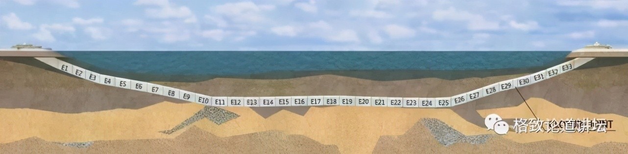 装到海底之后,这个隧道是不是就建设完成了?大家发挥一下想象力,每一段就像一个箱子,放一个,再放第二个,第二个箱子和第一个箱子首尾连接,第三个再和第二个首尾连接。