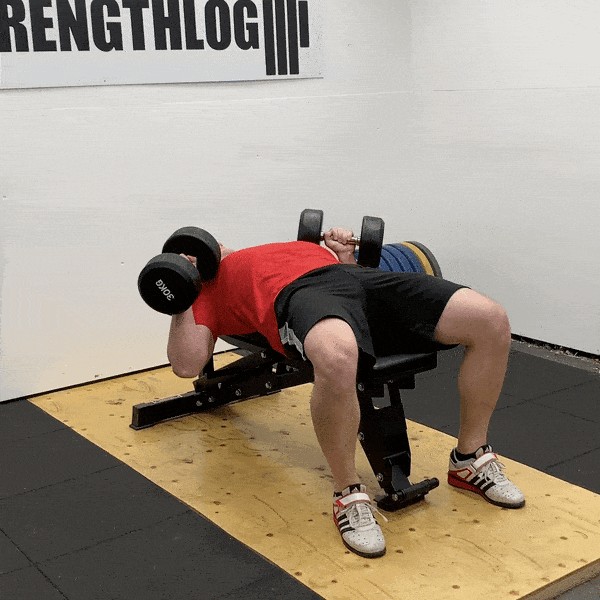 另外,因为身体是倾斜的,哑铃比平板卧推更容易举起来和放下去,更省力。
