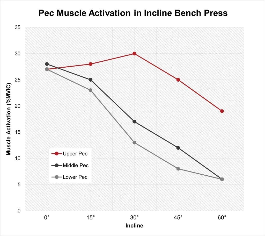 所以,不管你是用杠铃、哑铃,还是器械,只要你调整推举角度,胸肌的发力区域也会跟着变。