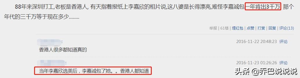 网友评论说,李嘉诚出资3000万保养李嘉欣截图