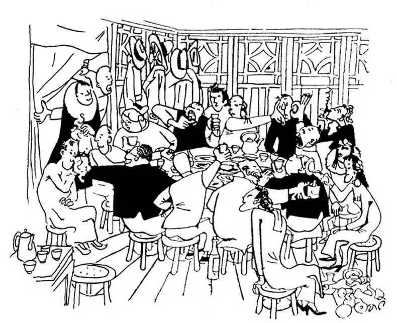 他们为什么能玩到一起去,我个人猜测有两点,首先因为能喝到一起去,丰子恺是属于一杯酒就能撬动他整个人,酒喝不多,就开始笑声不断。