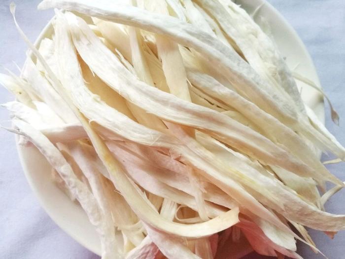 3、再将杏鲍菇有手撕成细条,撕的时候大家尽量做到粗细均匀。