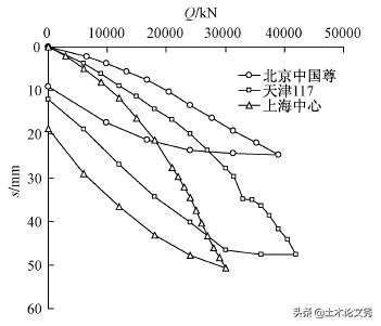 图4北京中国尊与津沪超长桩Q-s曲线对比