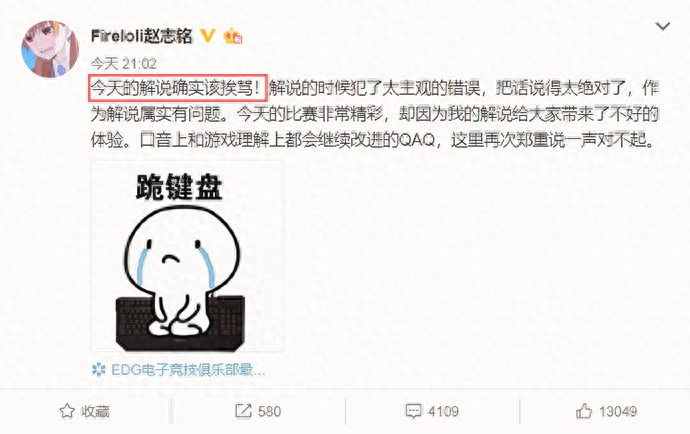 爱萝莉解说太业余被网友喷上热搜,赛后致歉:我确实该挨骂