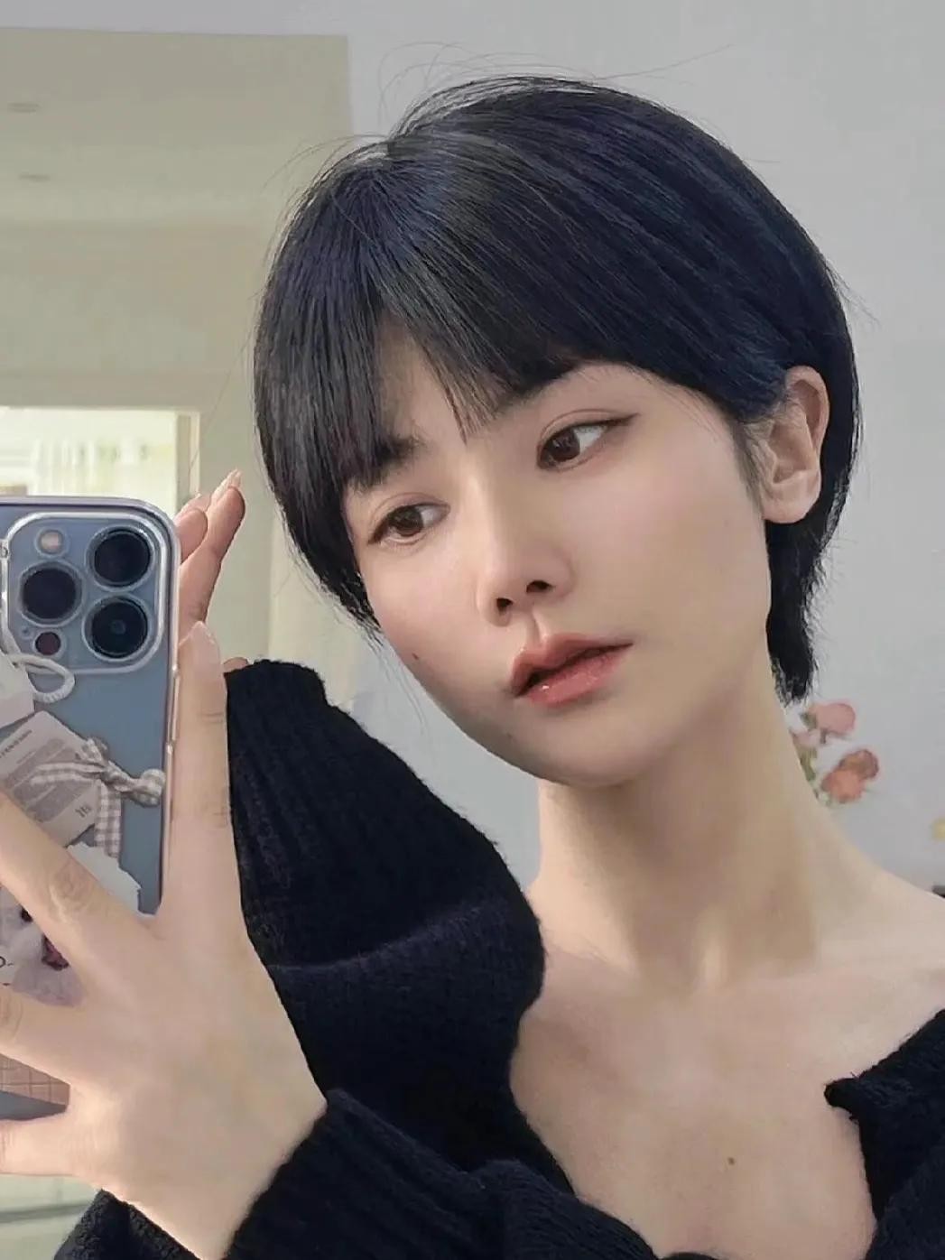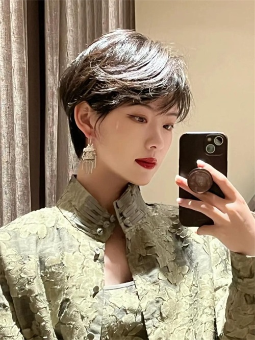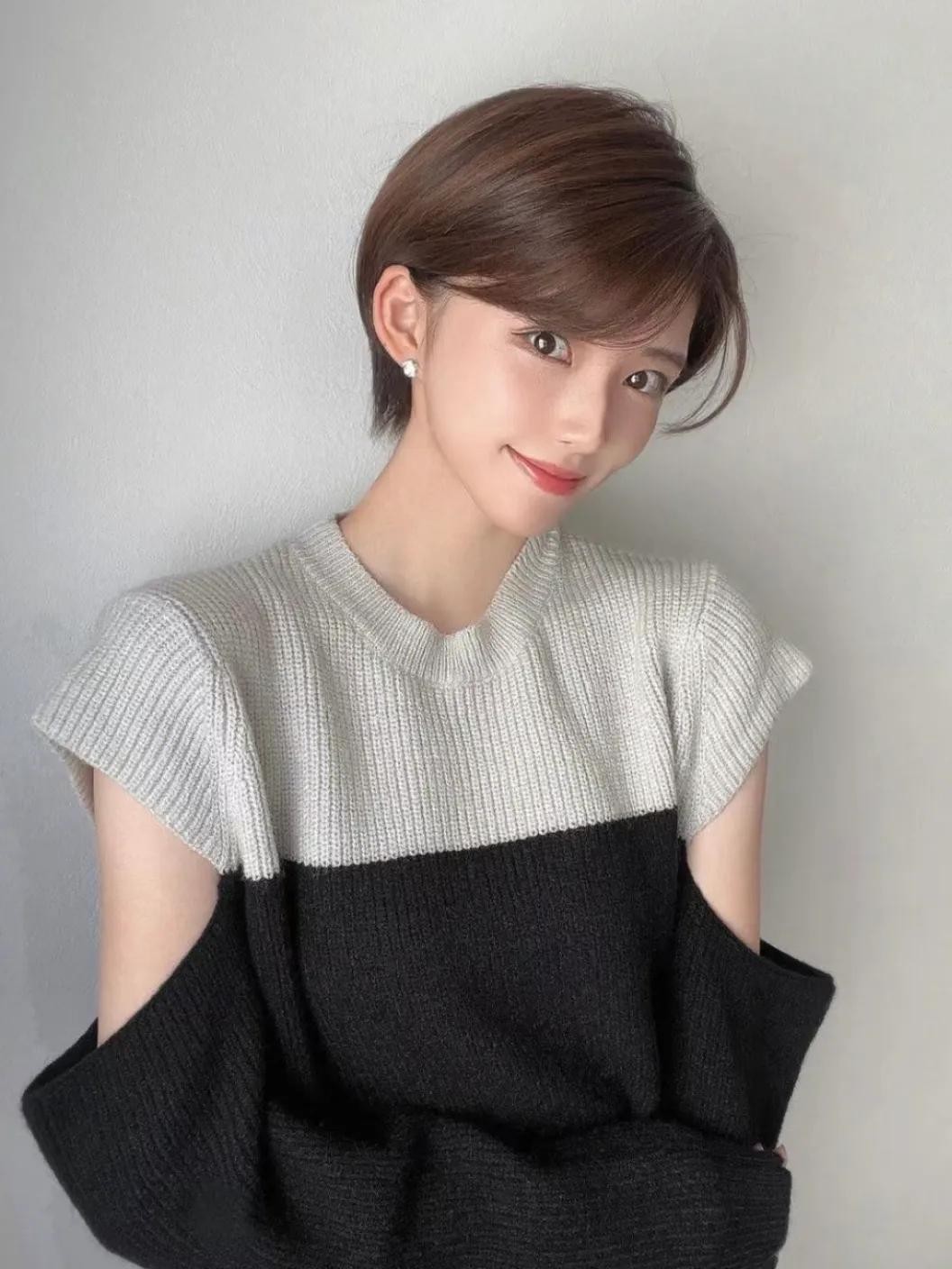 对于一些对自己颜值、五官自信的女性,可以尝试这类风格短发!没有过多的修饰,脸型完全打开来,是一种勇于表达的风格!