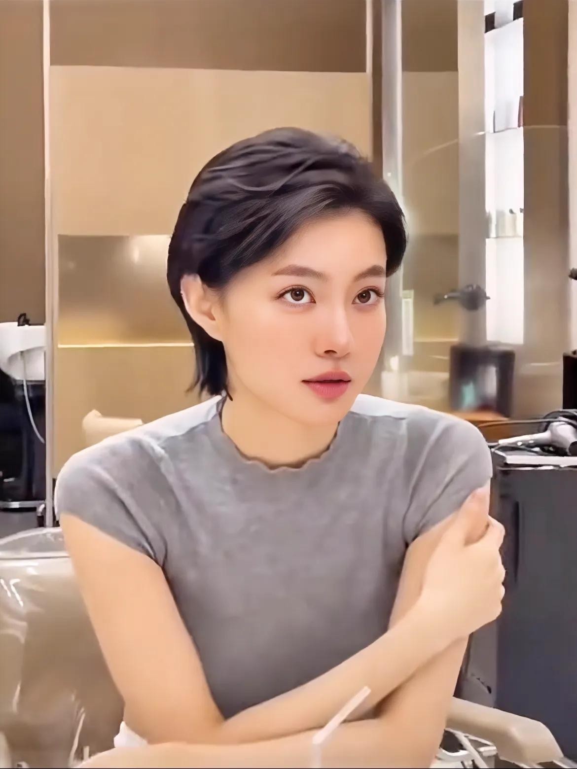 短发的第一要点是颅顶尽量要蓬松、只要头顶蓬松起来,即使脸型全部暴露出来,也不会显大!反而特别清爽、利落!