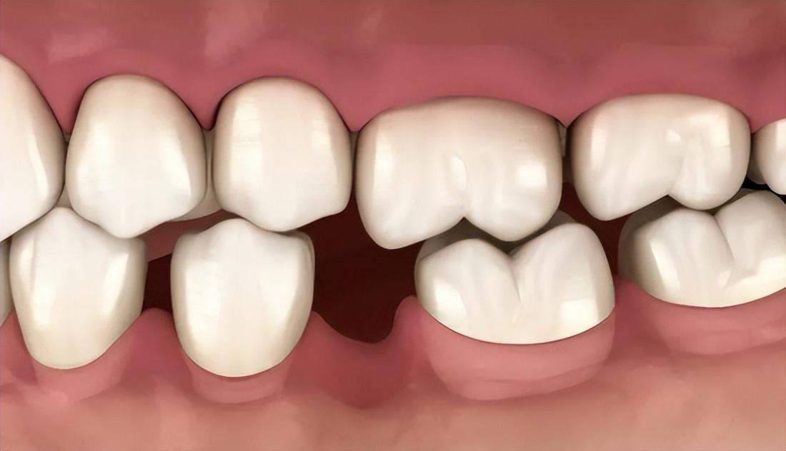 牙齿是互相依靠排排站的,缺了一颗牙之后,旁边的牙齿会失去依靠而倾斜。