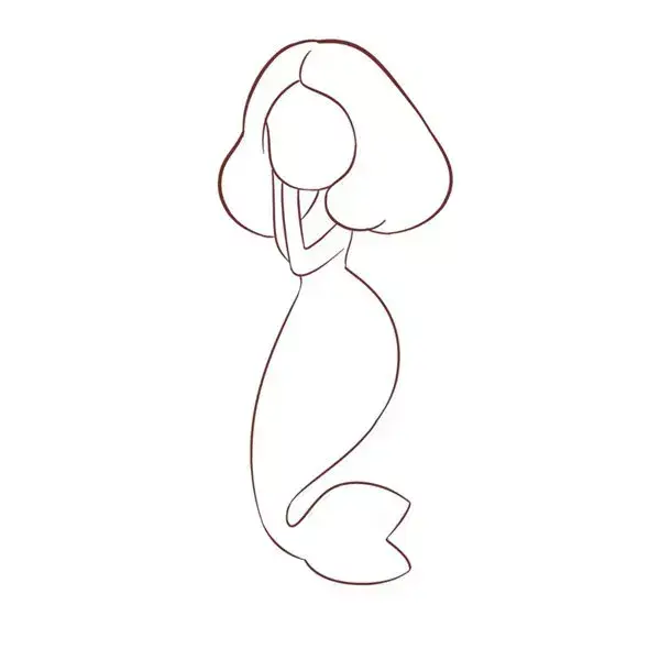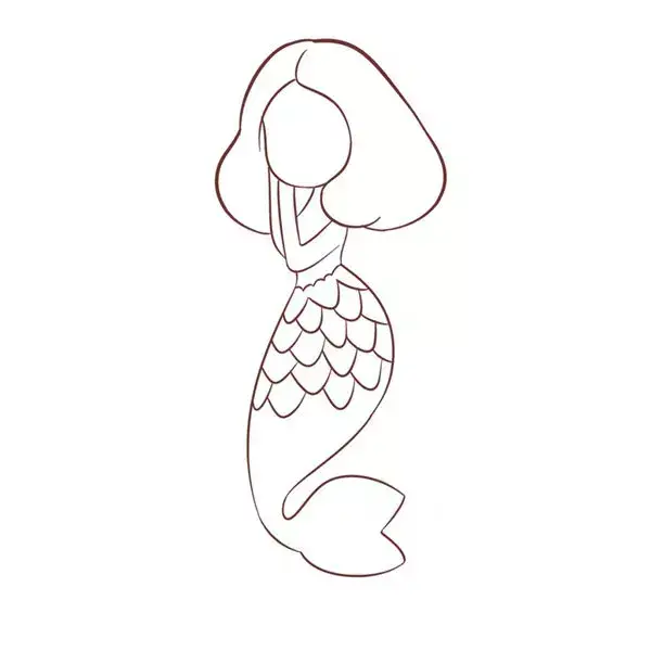 第一步:先画出美人鱼的头发,要注意曲直变化