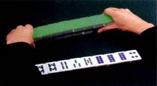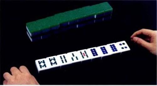 5、两手抓住牌墩两侧并推动,看上去像把牌墩从自己前面推开,或者是方便其他玩家摸牌。在推牌的时候,把藏在右手里的牌在向左推进去。