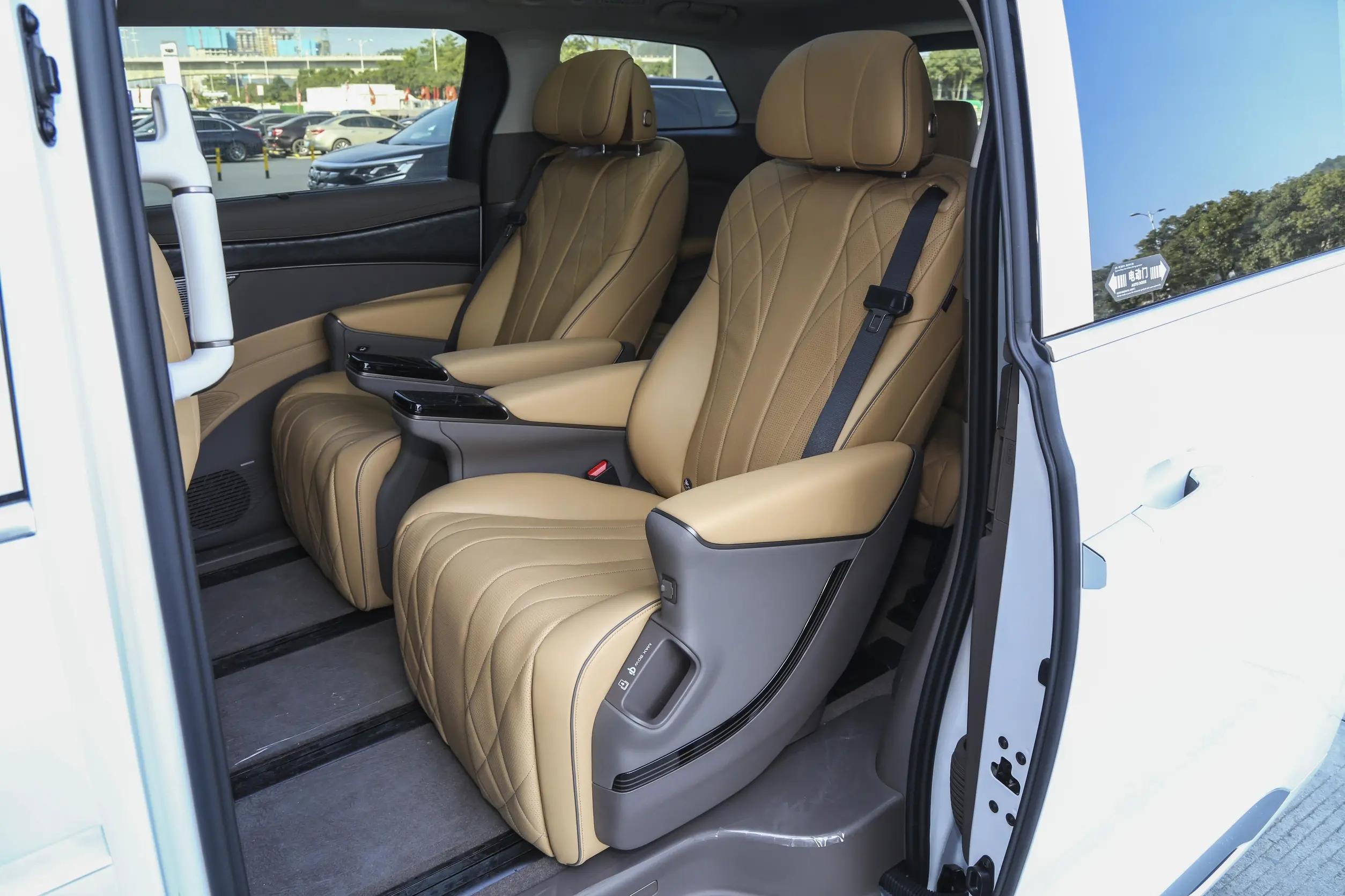 外观不用多说,国产车一向不会让人失望,车头中网尺寸非常大,甚至有些夸张,不过看起来很有气势,这是当下MPV的趋势。5250mm的车长在同级里很有优势,只是1960mm的车宽稍有不足,如果加宽到两米以上,空间和整车气势会更足一些。好在轴距达到了3110mm,所以车内空间非常奢侈,完全不输MPV标杆GL8。而且腾势D9的配置非常丰富,比如配备了车载冰箱,全车多层隔音玻璃,128色氛围灯,14个喇叭的丹拿音响,第二排座椅加热、通风、按摩,悬架软硬调节,加上各种各样的主被动安全配置,放在豪华品牌上至少超过百万,非常厚道。
