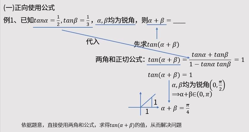 例1,已知α和β的正切值,且给出α和β的范围,均为锐角,求角α+β。