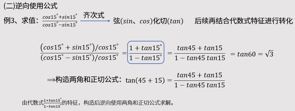 例1和例2都是正向使用公式的简单例题,接下来看逆向使用公式的部分。