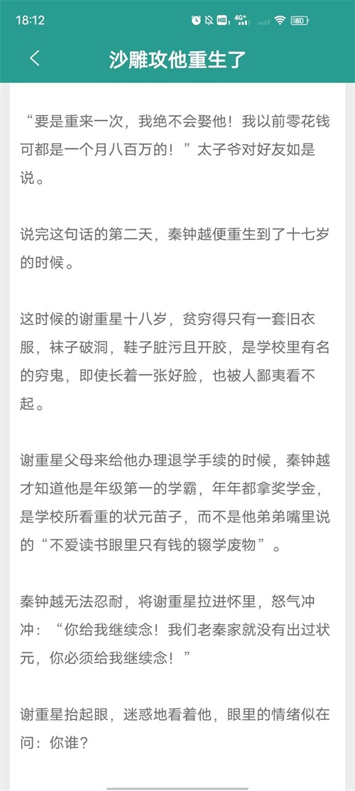 我看了好多文很少有推荐这本的,轻松小甜饼。我觉得攻真的是沙雕纯情大男孩的那种。阳光,善良,正直,无条件信任老婆不舍得老婆受一点委屈,疼老婆第一名,尤其知道老婆的遭遇之后,只会更疼老婆。钟越和他爹给我的感觉就是温暖沙雕。因为谢重星的处境和生长环境心疼他希望有好多人去爱他,给予他温暖,而钟越的出现无疑是谢重星晦暗生活的阳光。特别喜欢谢重星一本正经的逗老公玩,也处处维护老公,不让别人欺负只有自己可以逗。