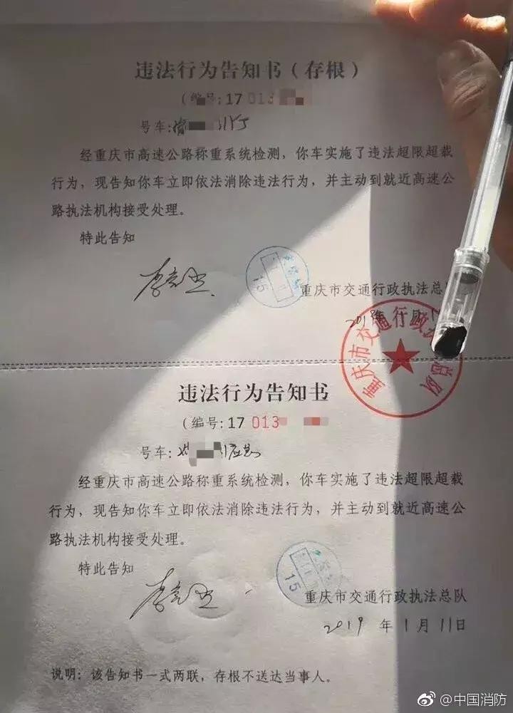 重庆消防车走高速因超载被罚,官方回应:开具了告知书,但没有处罚