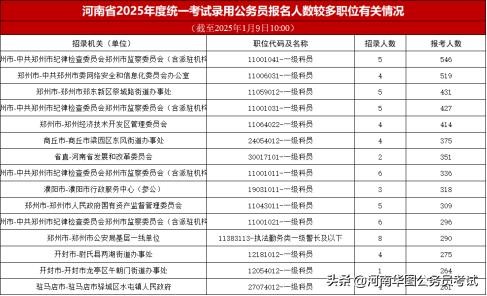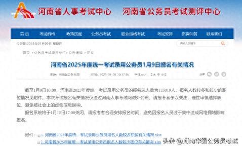 截至1月9日10:00,河南省2025年度统一考试录用公务员的报名总人数为115019人。