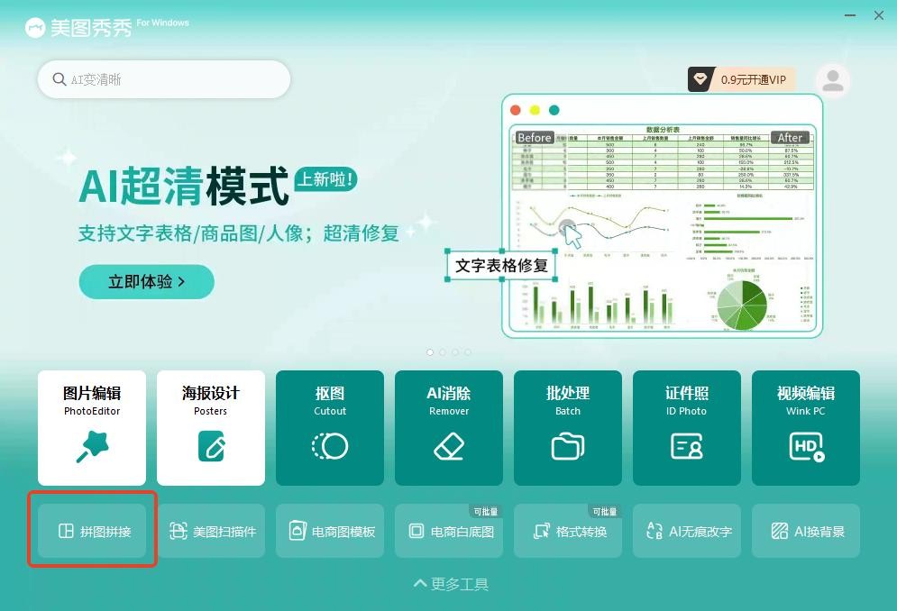 打开软件,选择首页的【拼图拼接】。