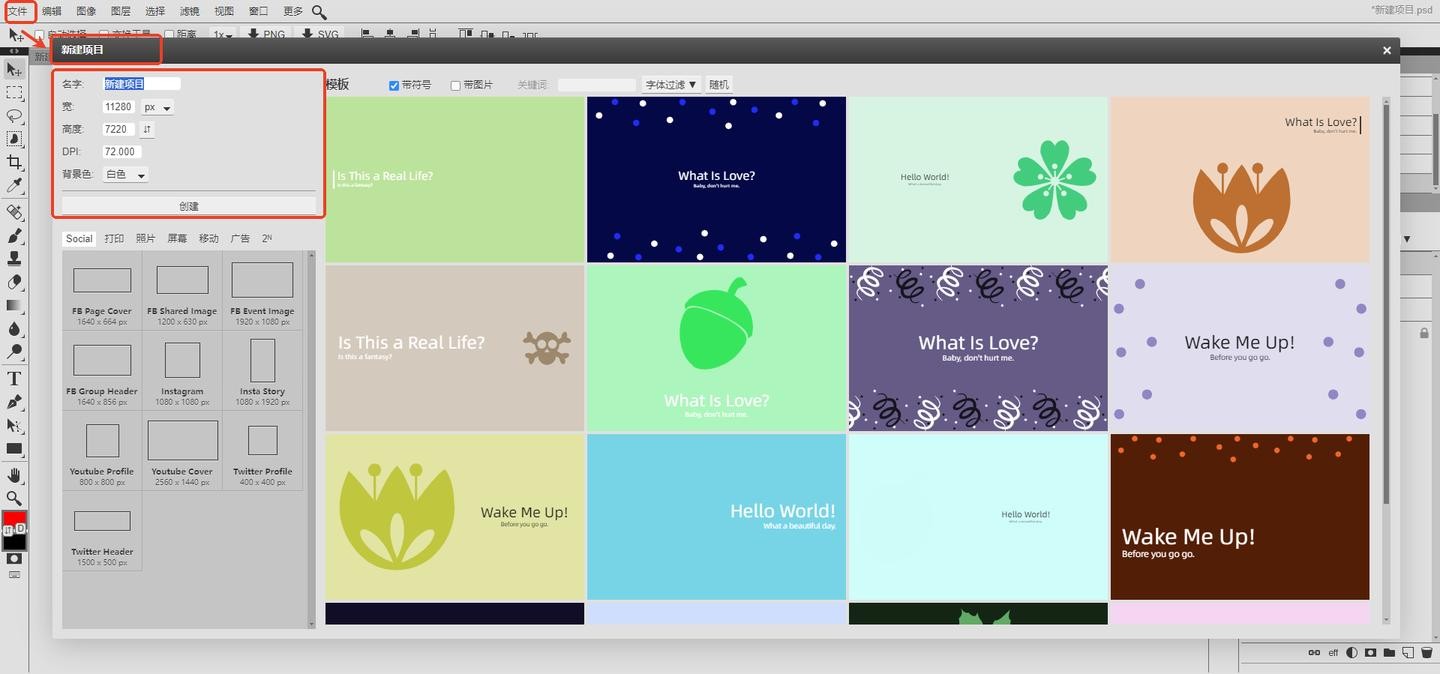 然后点击【文件】,设置一个画布,足够放下刚刚导入的几张图片。