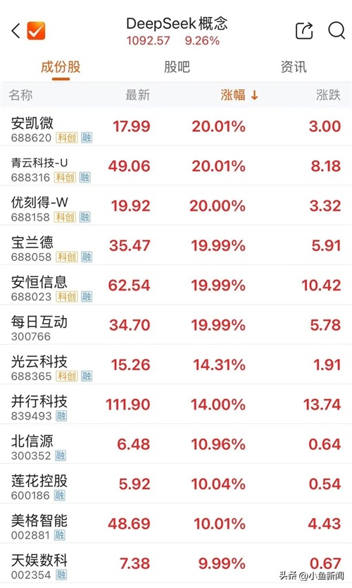 DeepSeek概念股持续火热,板块内掀“20cm”涨停潮