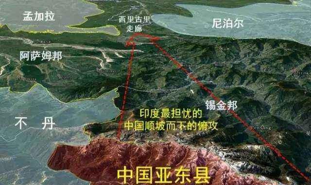 在印度本土和东北部之间,有一条狭窄的西里古里走廊,走廊很窄,最窄的地方才20公里,理论上几门远程火炮就能控制住,这是印度本土与东北部几个邦连接的唯一陆上通道。