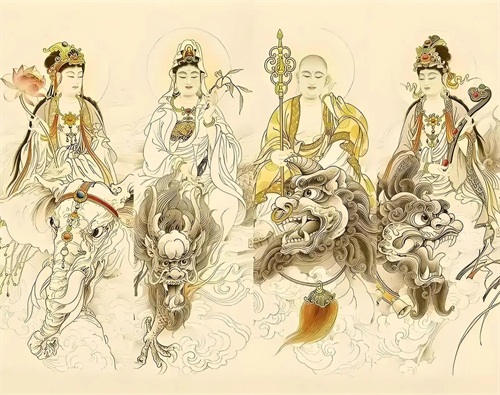 菩萨之中,最为著名的当属佛教四大菩萨,即地藏王菩萨、普贤菩萨、文殊菩萨和观世音菩萨。地藏菩萨以大行为著,驻于安徽九华山。山西五台山的文殊菩萨被称作大智,四川峨眉山的普贤菩萨称为大勇,浙江普陀山的观音菩萨则为大慈。每位菩萨各守一山,恪尽职守。