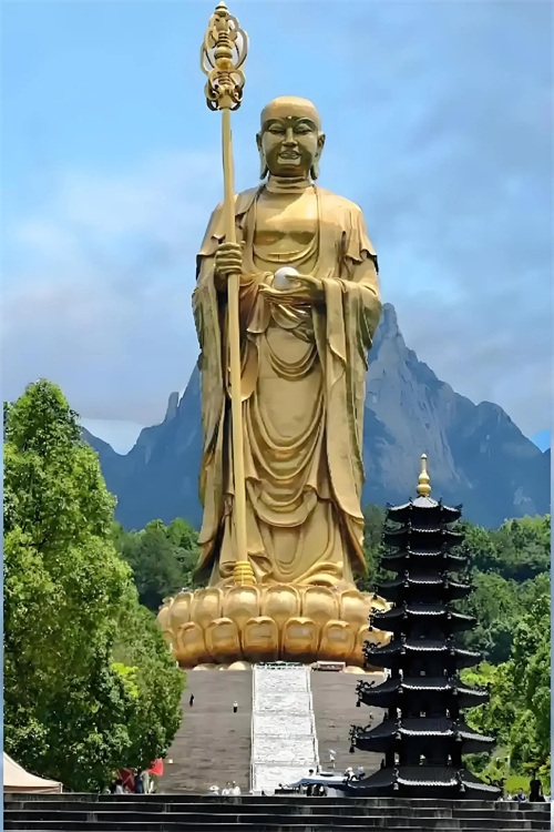 最后说说地藏王菩萨。地藏王菩萨也是一位广为人知的菩萨。根据《地藏十轮经》记载,地藏王菩萨具有安然不动如大地般的性格。传说地藏王菩萨受释迦牟尼所托,在释迦牟尼入灭后、弥勒佛降世之前度化众生。为此,地藏王菩萨广发大愿:地狱不空,誓不成佛;众生度尽,方证菩提。还有传说地藏王菩萨本是新罗国的王子金乔觉,在九华山驻锡数十年,圆寂后肉身不灭,全真入塔。